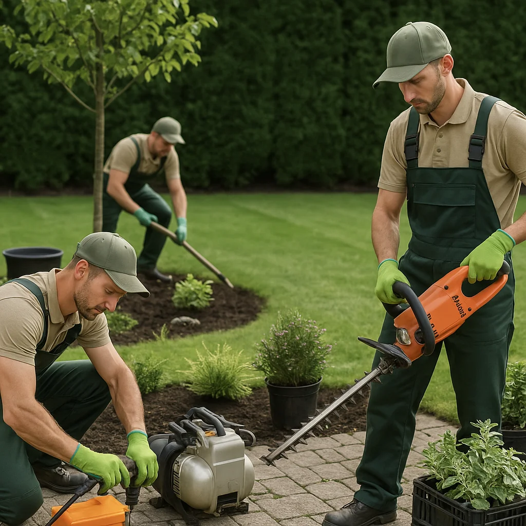 - فريق فني وهندسي متخصص في تصميم الحدائق.