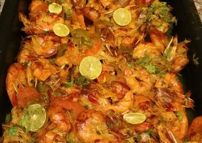 - قدمي صينية الجمبري ساخنة مع الأرز الأبيض أو الخبز الطازج.