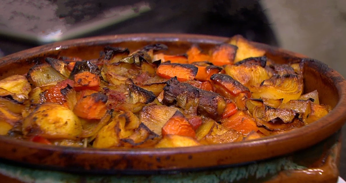 - ضعي طاجن العكاوي في الفرن واتركيه حتى يتم نضج العكاوي والخضروات.